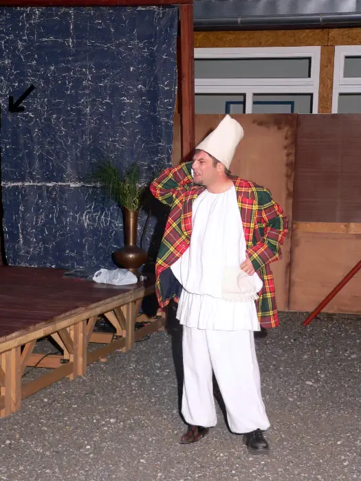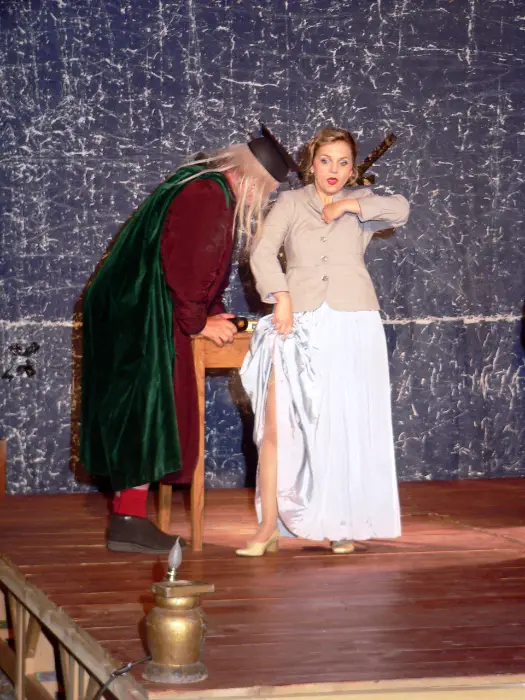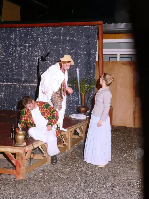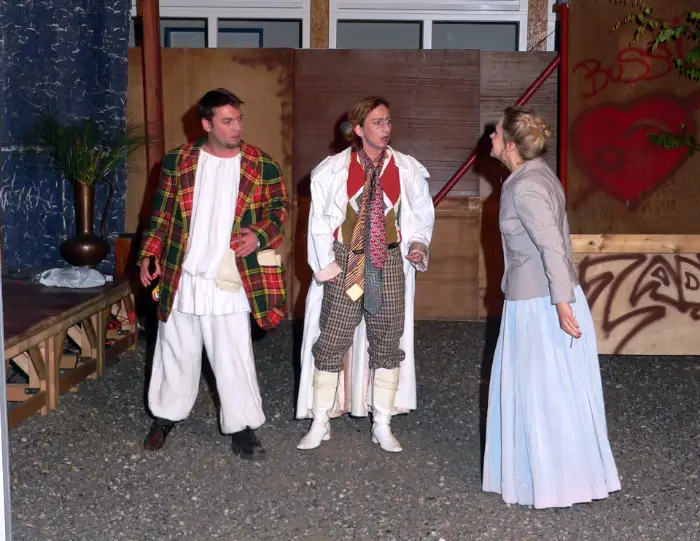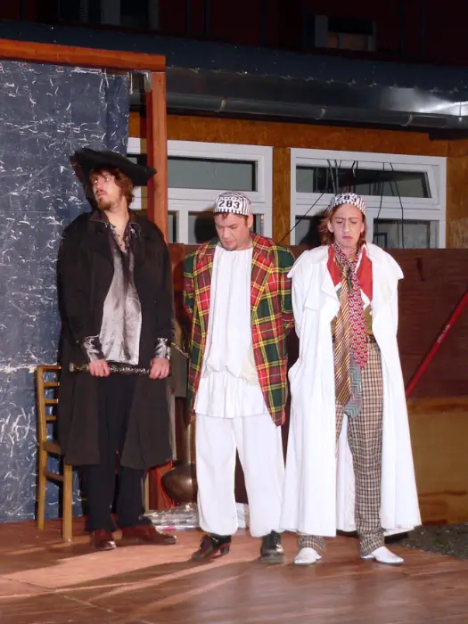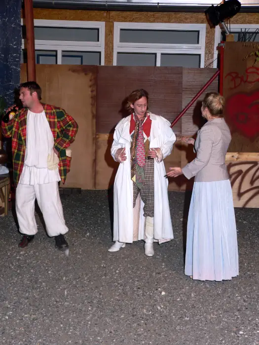 Theaterdirektor Hochrattler alias Pantalone, die Schauspieler Wanitschek, Tirschwitz und Grüber alias Arlecchino, Colombine, Pulcinella … eine Haus-gemeinheit im Leben als auch auf der Bühne – das Schlamassl. Neue – alte Figuren der Commedia dell´ arte im Stil der Posse aktualisiert.